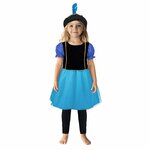 De jurk is gemaakt van zacht en licht materiaal, waardoor hij comfortabel zit en makkelijk beweegt tijdens het spelen. De kleurrijke combinatie van paars en blauw geeft de outfit een feestelijke en speelse uitstraling. Ideaal voor thuis, op school, bij intochten of bij het Sinterklaasfeest op het kinderdagverblijf.